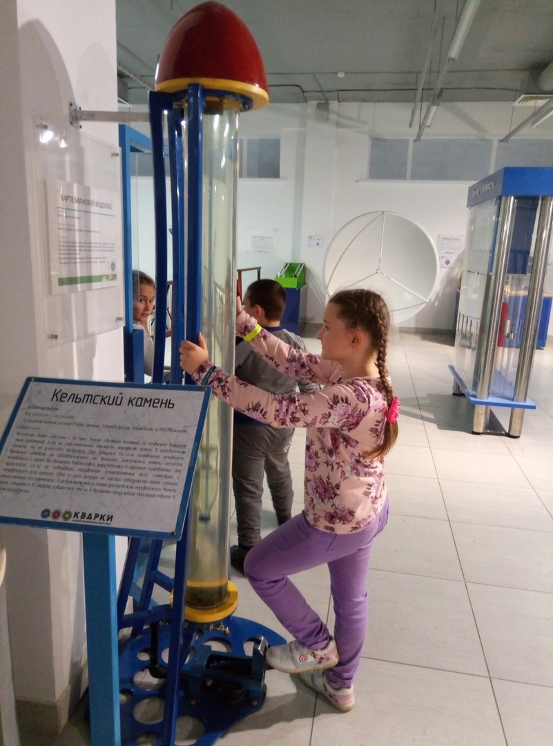 8.11.18 наш класс посетил нижегородский музей "Кварки". Что из себя представляет музей? В основном экспонаты - это оптические иллюзии, занимательные физические опыты, природные явления, у каждого экспоната есть дощечка с разъяснением механизма действия или физического явления. Все можно трогать, приводить в действие. Особый восторг у детей вызвало фото в темной комнате, когда на стене на некоторое время остались отпечатки силуэтов детей. На бис повторяли съемку раза три.